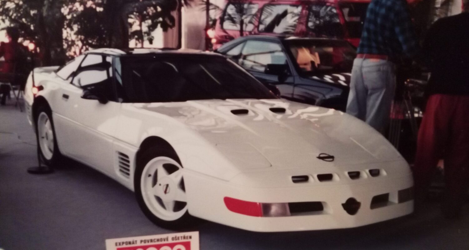 CHEVROLET CORVETTE C4 CALLAWAY na autosalonu v Paláci Kultury (dnes Kongresové centrum) v roce ’92. Speciální edice C4 Callaway Twin Turbo se vyráběly mezi lety 1987 až 1991. Exponát byl povrchově ošetřen autokosmetikou B2000. V pozadí lze vidět i expozici TOYOTA TSUSHO PRAHA, která zahájila svou činnost právě v roce 1992.