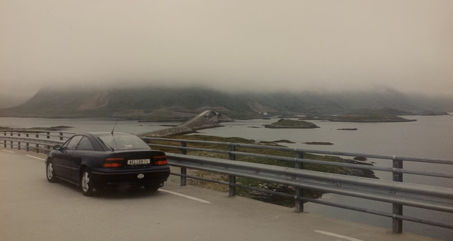 OPEL CALIBRA 2.5 V6, registrován v Praze. Jednalo se o vcholný model, tehdejší cena přesahovala 1 100 000 Kč. Fotografie byly pořízeny na výletě ve Francii a Norsku roku 1995.