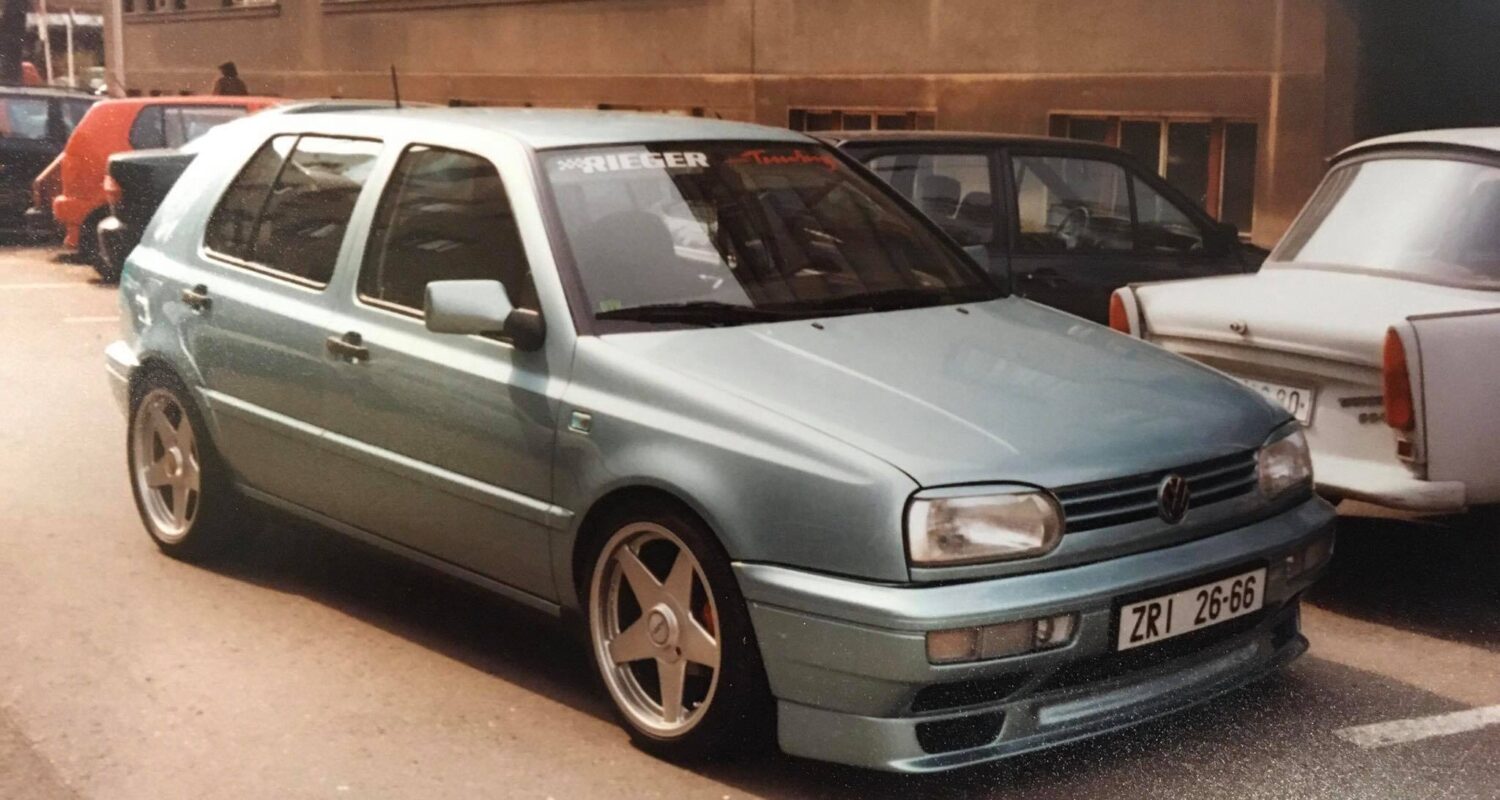 ?VOLKSWAGEN GOLF III. 1,9 TDi (Rieger tuning) byl registrován v okresu Ždár nad Sázavou. Povšimněte si i dobových kol značky AZEV A. Fotografie vznikla v druhé polovině 90. let! ?