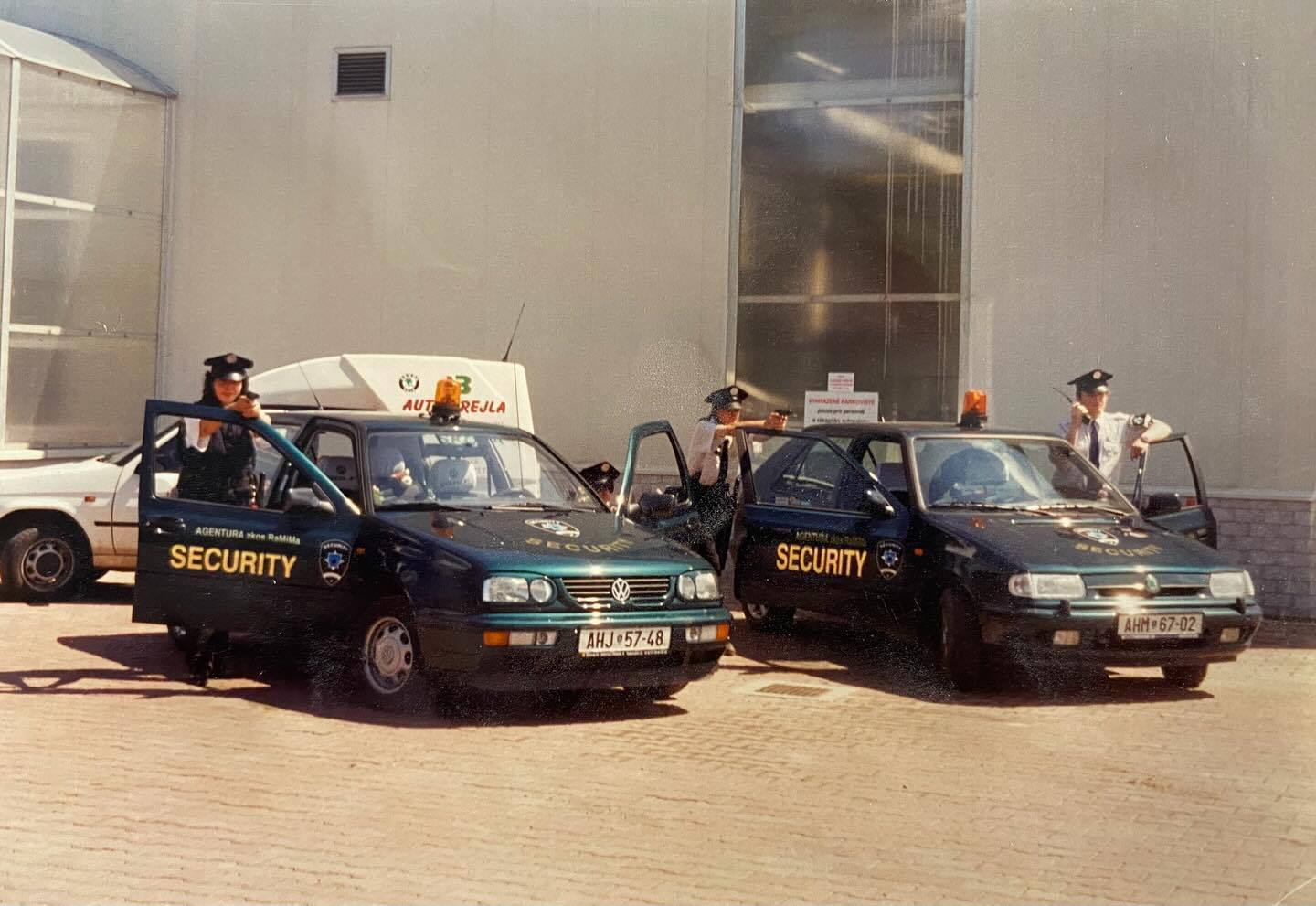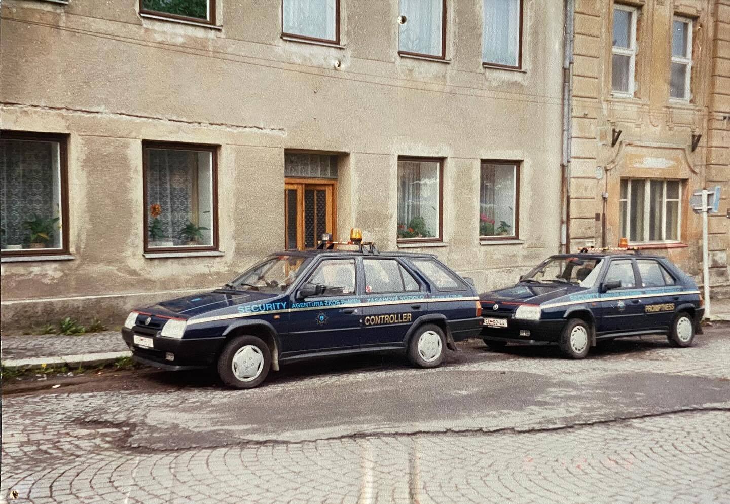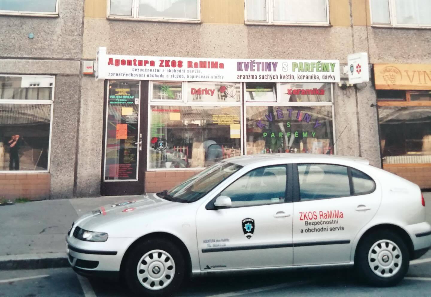 “Archivní fotografie z roku 1992 (a výše) zachycují vozidla tehdy začínající pražské bezpečnostní a zprostředkovatelské služby působící ve formě OSVČ pod značkou ZKOS RaMiMa.