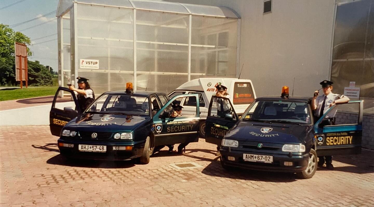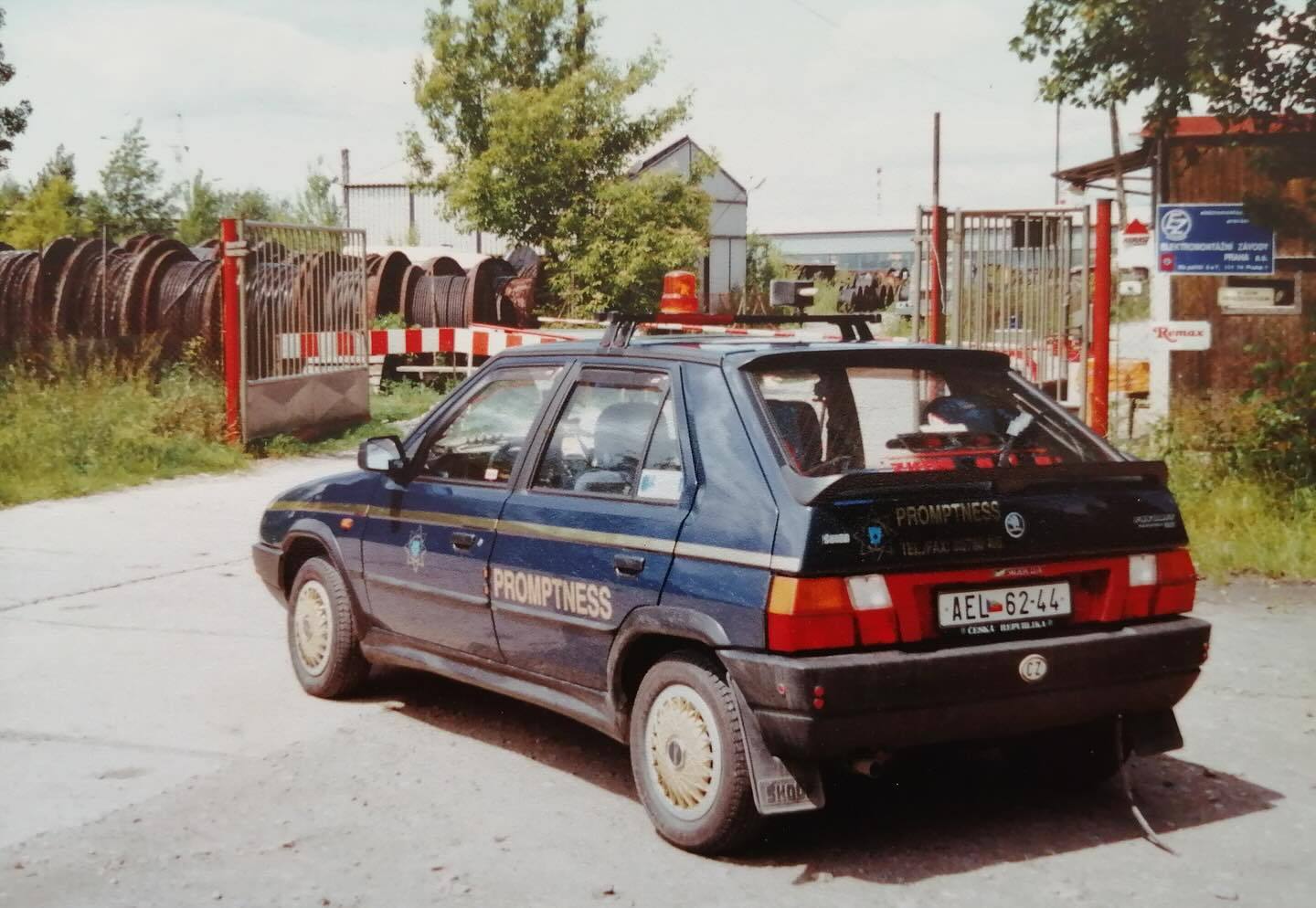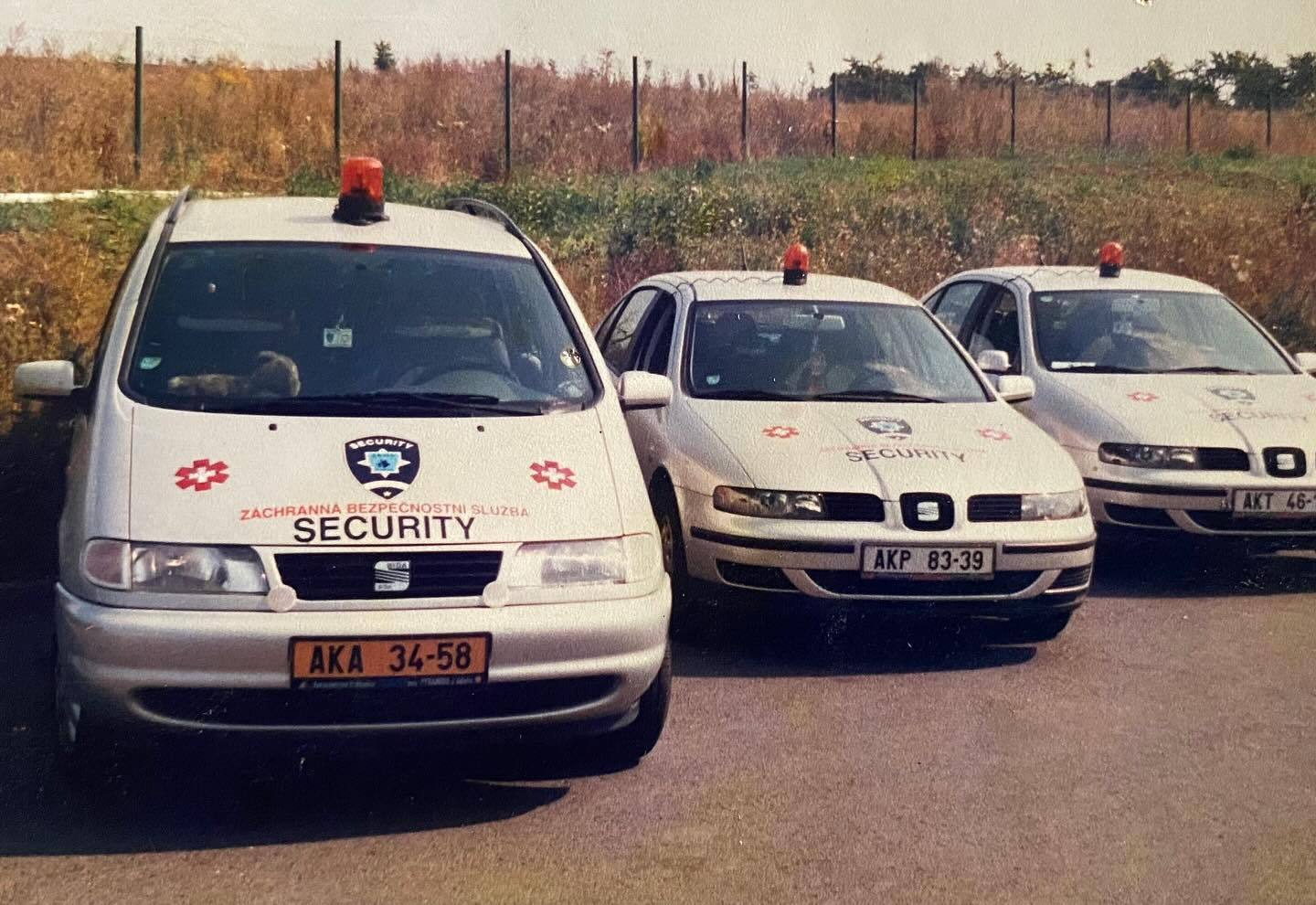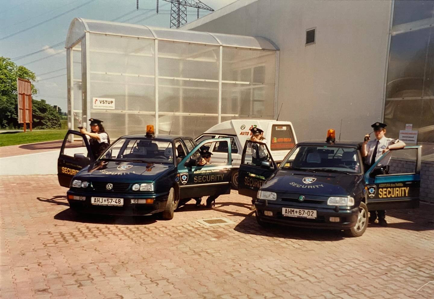 “Archivní fotografie z roku 1992 (a výše) zachycují vozidla tehdy začínající pražské bezpečnostní a zprostředkovatelské služby působící ve formě OSVČ pod značkou ZKOS RaMiMa.